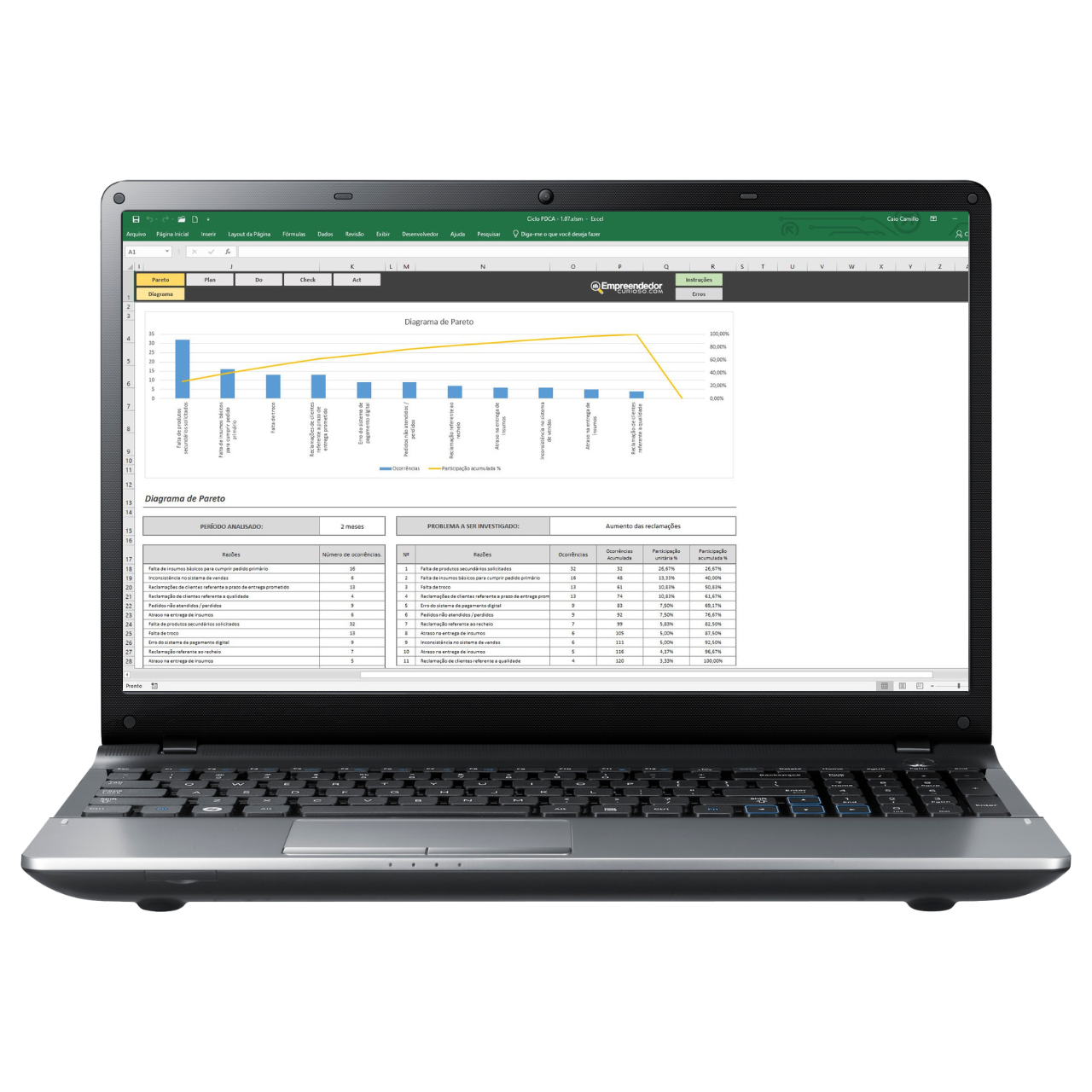 A planilha ciclo PDCA integra outras ferramentas e métodos que acrescentam maior qualidade na execução dessa tarefa, visando a redução de erros e economia de tempo e recursos. A Planilha Ciclo PDCA é uma ferramenta prática para aplicar o modelo PDCA e realizar melhorias contínuas. Essa tabela PDCA abrange técnicas como o Diagrama de Pareto, Ishikawa e 5W2H, focadas na solução de problemas e na otimização de processos